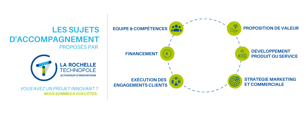Vous avez une idée innovante et vous cherchez à la faire évoluer ? Vous avez besoins d’outils méthodologiques ? L’accompagnement La Rochelle Technopole est personnalisé en fonction de vos besoins et s’axe autour de trois étapes : l’incubation, l’amorçage et le développement. Ce sont les différentes phases d’avancement de la création d’entreprise à La Rochelle